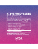 MegaSporeBiotic is a probiotic blend of 5 Bacillus spores that have been shown to maintain healthy gut barrier and immune function. The bi-phasic life cycle of the Bacillus spores allows them to remain dormant in harsh environments until they reach more favorable environments like the human gastrointestinal tract.